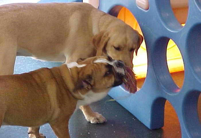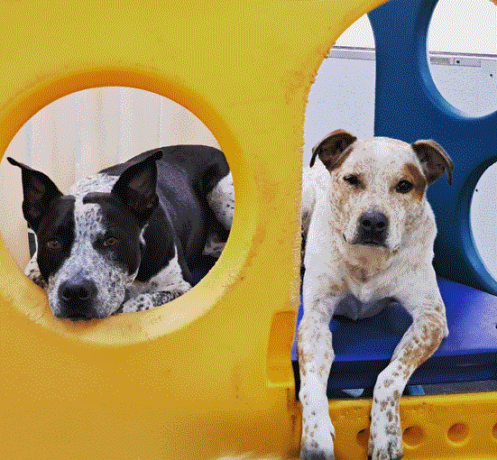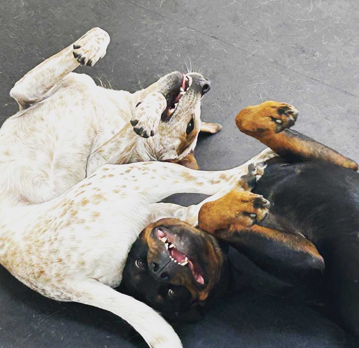 Whether they’re playing tug of war with one another, curling up in a soft bed, or chasing each other around the yard, the dogs that come through our doors each find their own way to have fun.